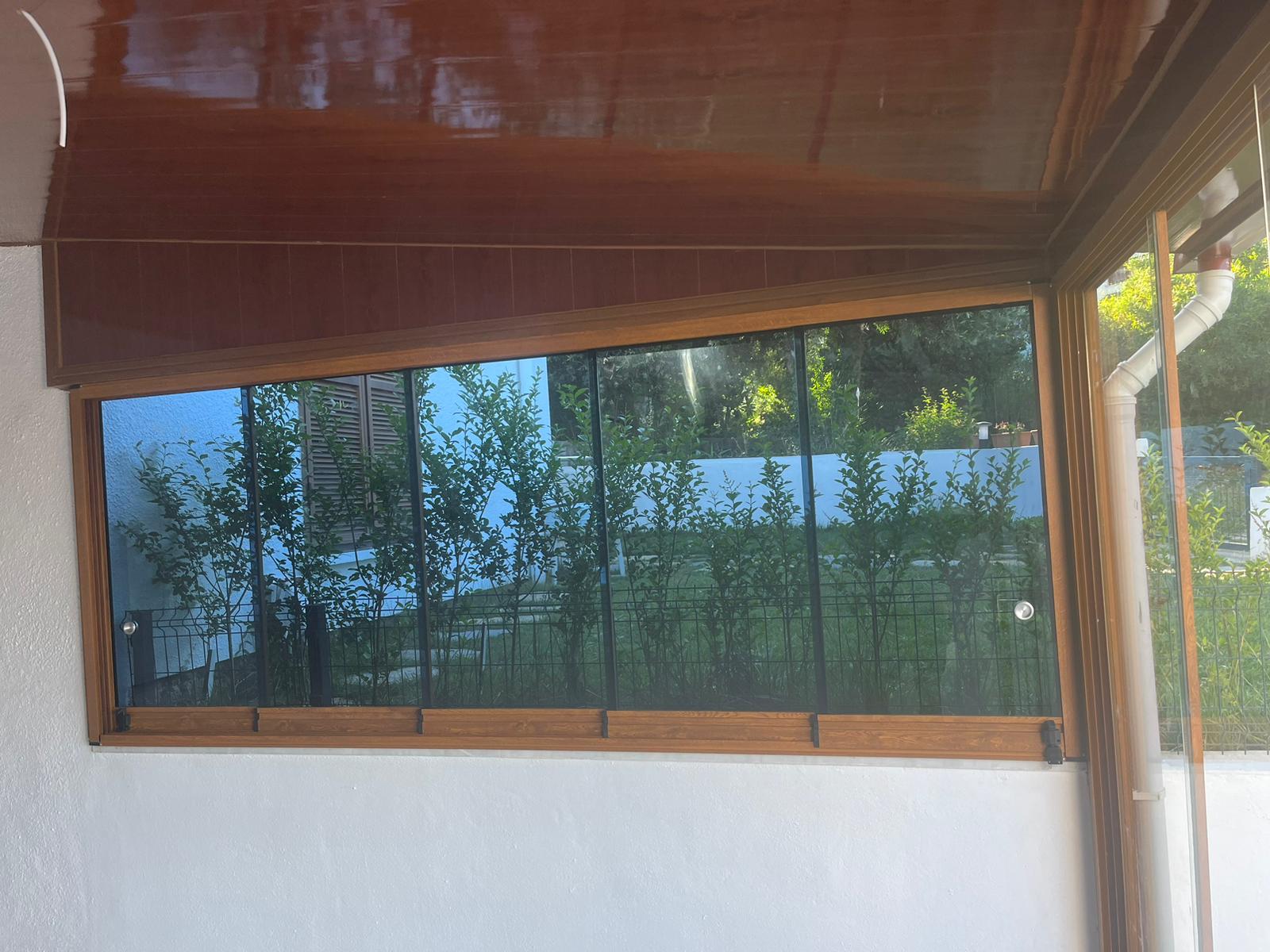 Bu sistemde, cam paneller raylar üzerinde hareket eder ve istenilen konumda durabilir.