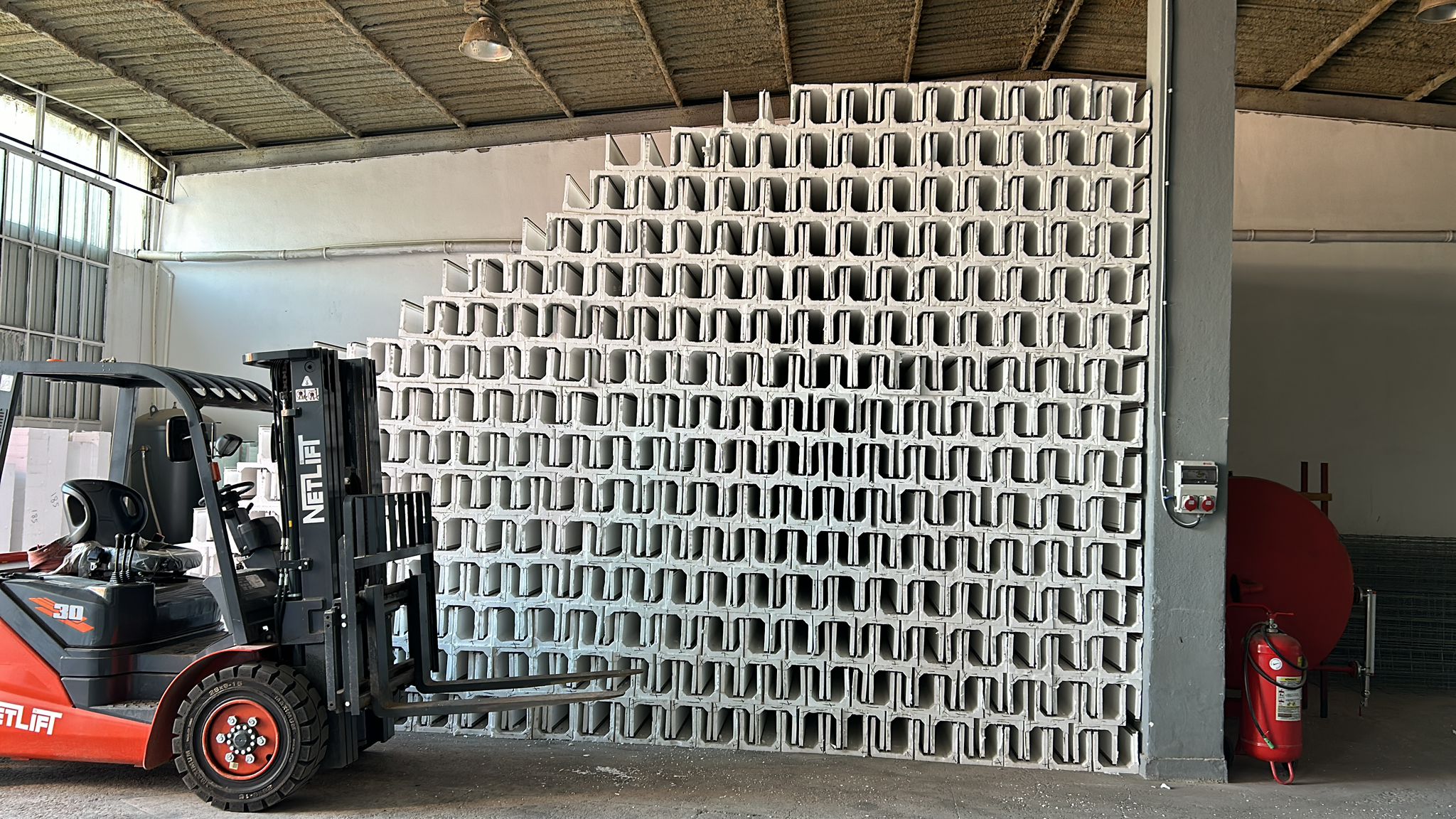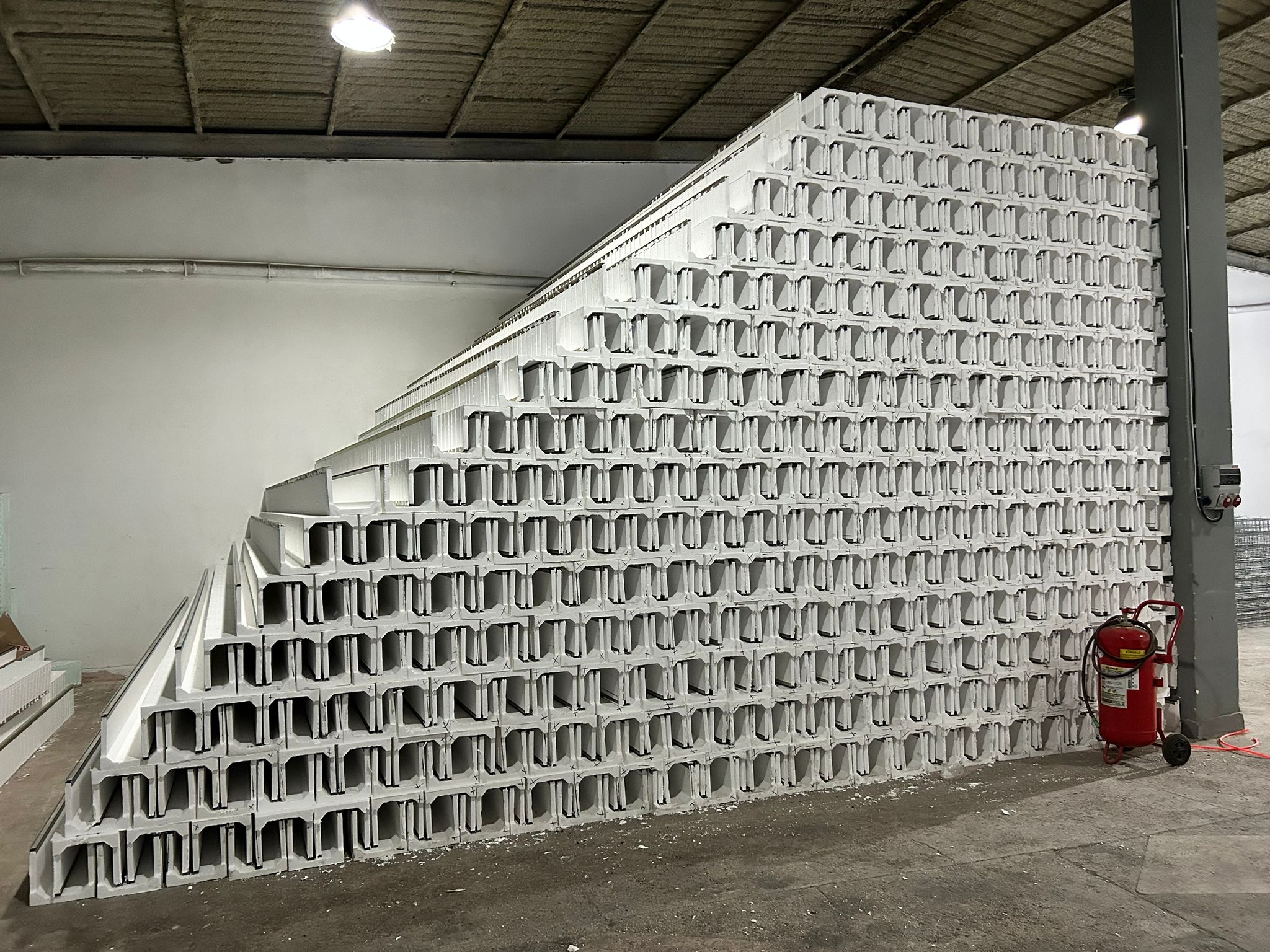 Yalıtımlı panjur köpük kutusu, üretiminde kullanılan EPS malzeme ve galvaniz tel sayesinde açık alanda stoklanabilir.